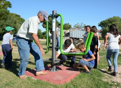 En la plazoleta de Mevir, en Esperanza, fueron colocados otros seis juegos que conforman una estación saludable, del mismo tipo de los que habían sido retirados por orden del alcalde Ramiro Ayende el pasado 23 de marzo. La Intendencia Departamental envió esta estación “a préstamo”, en tanto se espera la resolución judicial respecto al sonado episodio. La algarabía de niños y mayores no se hizo esperar.