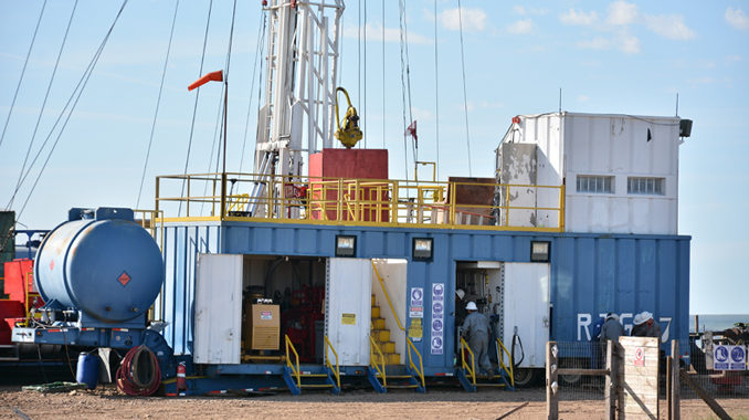 Se estima que hoy, desde temprano, se continúe la perforación previendo superar los mil metros de profundidad, ya que la semana pasada se encontraron hidrocarburos mezclados con arena a 793 metros de la superficie. Continuaron perforando hasta los 845 metros, pero no se halló otro indicio, por lo cual prevén superar los mil metros para saber si hay o no petróleo en esa zona.