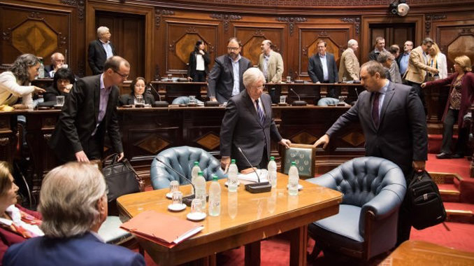 MONTEVIDEO (Por Daniel Hardy Coll).- Senadores de todos los partidos políticos intercambiaron opiniones y posiciones con cinco ministros de Estado durante diez horas el pasado martes sobre el preacuerdo de inversión de UPM firmado por el presidente Dr. Tabaré Vázquez, para instalar una posible segunda planta de celulosa de dicha empresa, la que se ubicaría en la margen sur del río Negro, en Durazno.