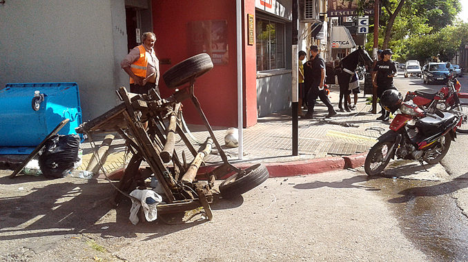 Pasadas las 14.30 de ayer, un carro estaba parado en Leandro Gómez casi Dr. De Herrera, cuando por razones que se intentaban establecer el caballo se desbocó y, dando la vuelta, corrió por Leandro Gómez al Oeste, contra flecha. Su recorrido terminó cuando el carro chocó con una columna y la volqueta de 19 de Abril casi Leandro Gómez, rompiéndose parte del vehículo, por lo que el caballo quedó suelto. No hubo heridos. Se hizo presente personal de Seccional Primera de Policía y de Movilidad Urbana de la Intendencia.