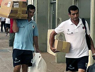 Ayer, los jugadores de Dolores, que llegaron a Paysandú para enfrentar al dueño de casa por la Copa Nacional de Selecciones, bajaron del ómnibus con varias cajas con alimentos no perecederos que tendrán como destino a los sanduceros afectados por las inundaciones.