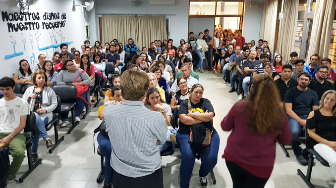 “Todo parece indicar que vamos a tener una demanda récord de inscripciones”, dijo el integrante del Consejo de Formación en Educación, maestro Luis Garibaldi, durante su participación en el acto de bienvenida a los alumnos por el inicio de clases en el Instituto de Formación Docente “Ercilia Guidali de Pisano” (foto). La presencia del consejero fue aprovechada por los docentes para transmitirle su preocupación ante la existencia de grupos sumamente numerosos, algunos incluso con más de un centenar de estudiantes, así como la falta de salones y bancos para alojarlos con la comodidad debida. Gabridaldi se comprometió a encontrar una solución con rapidez.