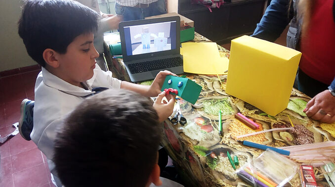 Por ejemplo, el sonido lo amplificarán con parlantes de computadoras y al sensor de movimiento lo adaptarán con un kit de robótica de Arduino. “Yo los estoy guiando, pero los que crean son los niños, ellos dibujaron sus prototipos y los pusieron en práctica junto a sus padres”, añadió la docente. “Con el mensaje en las led de la Micro:bit buscamos concientizar”, remarcó Lima.