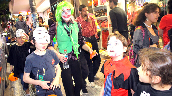 Como cada 31 de octubre, el día que se celebra “Halloween” –la Noche de Brujas–, cientos de niños y adolescentes coparon los negocios del centro para pedir una golosina. Maquillados, vestidos para la ocasión emulando a simpáticas (o no tanto) brujas, payasos terroríficos, monstruos, fantasmas, el Guasón, Popeye y hasta angelitos, la diversión estuvo acorde a la cantidad de dulces que recolectaron. Los quioscos fueron otra vez los más “atacados” por la turba de demonios que –mirando con cara de terror– consiguieron llenar sus canastas de cabalazas.