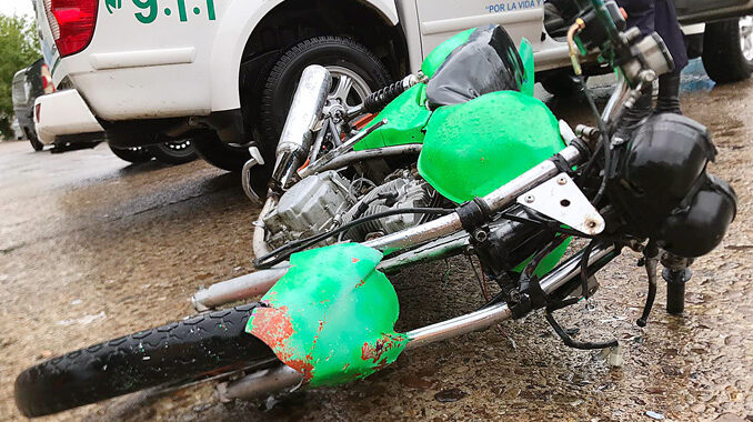 Una persona que circulaba a bordo de una motocicleta de 200 cc por calle Montevideo al Sur chocó con una camioneta Fiat Fiorino, matrícula IAD 9237, al llegar a la intersección con Artigas. El motociclista cayó y sufrió traumatismos leves. Fue trasladado por UCEM al Hospital Escuela del Litoral.