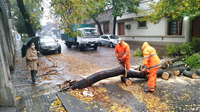 Con la lluvia caída entre la tarde del sábado y ayer, 142 mm en la Estación de Inumet Paysandú, en tanto en la ciudad fue de 127,6 milímetros, abril es el segundo mes del año que en Paysandú llovió por encima del promedio mensual histórico (103 mm). En enero la lluvia sumó 124,1 mm (promedio 100 mm). Tanto en febrero como en marzo llovió por debajo del promedio mensual histórico. En las últimas horas la mayor intensidad de la lluvia se concentró entre la noche del lunes y el mediodía de ayer, acompañada por rachas de viento. De hecho entre las 9.30 y las 15 Paysandú estuvo bajo alerta naranja. El Centro Coordinador de Emergencias Departamental (Cecoed) indicó a través de su coordinadora Olga Rodríguez que “hubo algunos llamados pero esencialmente para informar por algún árbol caído o por anegamiento de hogares”.