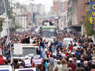 El Palacio Peñarol estaba repleto de sanduceros. Por acá, a casi 400 kilómetros de distancia, todos estaban prendidos al televisor.