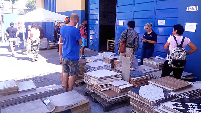“Hay de todo, cerámicas de piso, de pared, porcelanato, de patio. Y lo mejor es que va a estar todo a la vista para que puedan mirar y tocar la mercadería antes de llevarla a casa”, agregó. El horario es jueves y viernes de 9 a 12 y de 14 a 18 horas; y el sábado de 9 a 12:30 horas.
