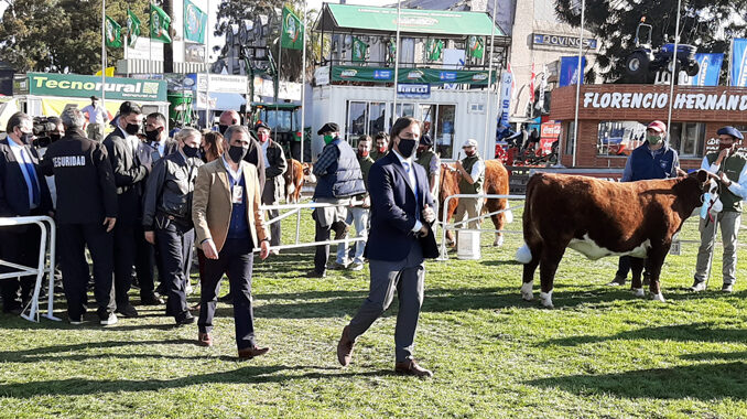 (Por Pablo Blanc) El presidente de la República, Luis Lacalle Pou, permaneció más de 7 horas este miércoles en la rural del Prado, oportunidad en la que se entrevistó con directivos de la Asociación Rural del Uruguay (ARU), fue entrevistado en una programa radial, recorrió el predio y coronó en la pista a los grandes campeones de las razas Polled Hereford y Aberdeen Angus.