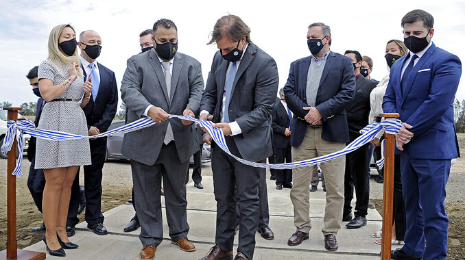El presidente Luis Lacalle desarrolló una intensa agenda ayer en Salto, que comprendió la inauguración del Polo Educativo Científico Tecnológico Binacional en Salto Grande; la visita a las obras que lleva adelante la Intendencia y la OPP de la Central Hortícola del Norte; la planta de procesamiento de cáñamo medicinal –un derivado del Cannabis– y entregó una ambulancia a la policlínica de Cuchilla del Guaviyú.