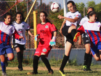 Primer tiempo parejo y con emociones en un juego abierto donde ambos equipos aprovecharon su momento. La primera llegada fue para la visita con un cabezazo de Acerbis que pasó cerca del horizontal, pero luego Yubar aprovechó su velocidad y luego de una carrera enfrentó a la arquera y con toque suave puso el 1 a 0 para Amanecer.