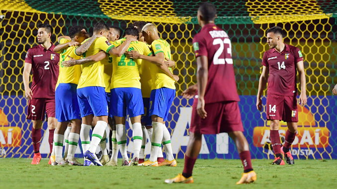 En un encuentro en el que dominó durante casi todo el desarrollo, Brasil solo pudo vencer por 1-0 a Venezuela anoche en el Estadio Morumbí de Sao Paulo, por la tercera fecha de las eliminatorias para el Mundial de Catar 2022. Este triunfo le permitió a la selección brasileña, próximo rival de Uruguay (el martes en el Centenario), colocarse como único líder y con puntaje perfecto, también aprovechándose del empate el jueves de Argentina ante Paraguay (1-1). De su lado, la vinotinto sigue en el fondo de la tabla de posiciones, con tres derrotas consecutivas y sin sumar unidades.