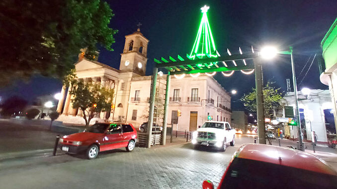Brillan cada noche los cuatro árboles de Navidad colocados por la Intendencia de Paysandú en 18 de Julio y Monte Caseros, frente al Hospital Escuela del Litoral, en las inmediaciones de la plazoleta donde se encuentra el monumento a José Batlle y Ordóñez y el Patio del Mercado.