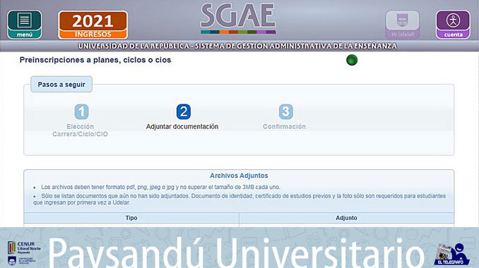Hasta entonces, los estudiantes que deseen iniciar carreras que se ofrecen en el Centro Universitario Regional (Cenur) Litoral Norte, podrán realizar el procedimiento de inscripción virtual detallado en la página web. En el sistema www.bedelias.universidad.edu.uy deberán adjuntar escaneada la cédula de identidad, el certificado de egreso de enseñanza media (secundaria o UTU, según sea el caso), foto carné y carné de salud; además del formulario específico de inscripción al Cenur Litoral Norte firmado y con la información de contacto.