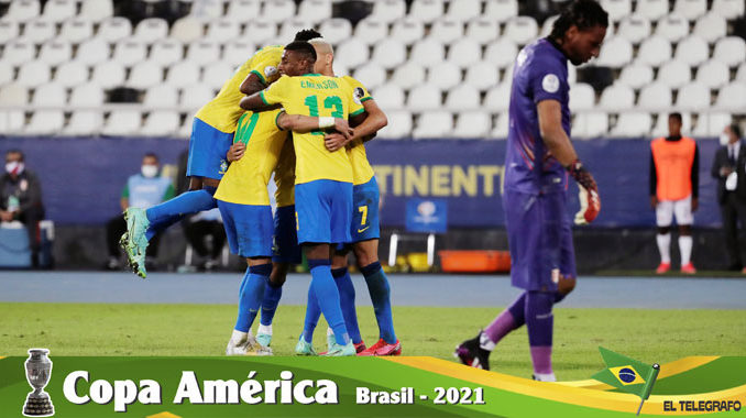 Brasil, gran candidato a quedarse con el título, goleó 4 a 0 a Perú por el Grupo B de la Copa América, el que lidera sin inconvenientes tras sus dos primeras presentaciones. Perú, en su debut tras tener fecha libre en la primera etapa, quiso pero no pudo ante un Brasil que viene entonado en eliminatorias y comenzó a ritmo arrollador la Copa América. En un partido que enfrentó a los finalistas del torneo en el 2019, Alex Sandro, con un derechazo y sin dejarla caer, abrió la cuenta para la verdeamarela en el minuto 12 luego de ser asistido por Gabriel Jesus.