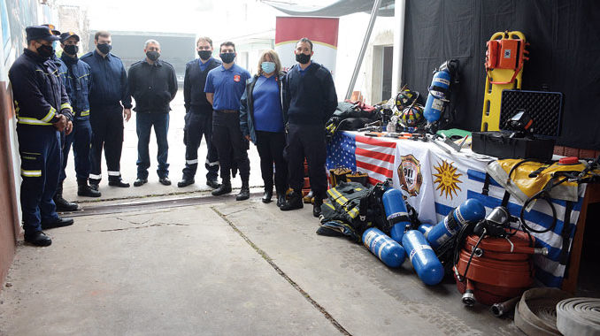 “Entregamos el equipamiento que vino donado de la fundación 911 de Estados Unidos con el trabajo de la oenegé Ensueño Lubolo, que son uruguayos que están trabajando arduamente para conseguir equipos de donación para Uruguay, no solamente de bomberos, sino también equipos para hospitales como camas, sillas de ruedas, material ortopédico, que envían en contenedores que llegan asiduamente al país, sin costo alguno”, dijo Riaño, detallando que esos equipamientos se distribuyen “a las instituciones que lo requieren, es un apoyo social muy importante para el país y para nosotros bomberos, indudablemente, ya que son materiales de tecnología bastante avanzada y si bien son usados, están en muy buenas condiciones”.
