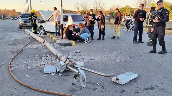 Lesiones menores fueron las sufridas por los ocupantes de un automóvil que chocó contra una columna de alumbrado público.