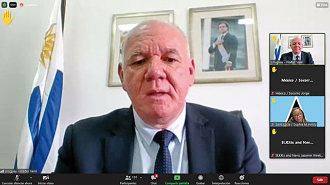 “Debemos decir que las medidas implementadas por nuestro país para apoyar la recuperación económica del sector Mipyme post-COVID, han sido muchas, con ciertas particularidades propias que merecen ser destacadas”. Tras recorrer las acciones tomadas por el gobierno uruguayo desde el 13 de marzo de 2020, Verri sostuvo que “las medidas adoptadas estuvieron orientadas a estimular la economía y la demanda de mano de obra, utilizando las herramientas fiscales y monetarias disponibles para el alivio de la deuda. A través de este pool de medidas tomadas, apuntamos a garantizar una protección integral durante la crisis, con efectos para el ‘día después’”. “Ello requirió garantías de seguridad y salud en el lugar de trabajo; arreglos laborales debidamente diseñados, como el teletrabajo; acceso a seguros, créditos blandos, prórrogas, y la baja remunerada por enfermedad, entre otros. Como se aprecia hemos considerado prioritario asistir de manera inmediata a las pequeñas y medianas empresas, como forma de preservar los empleos dignos, propiciando el mantenimiento de los ingresos de los hogares, asegurando así la calidad de vida de nuestros ciudadanos”, explicó ante representantes de todos los países integrantes de la OEA.