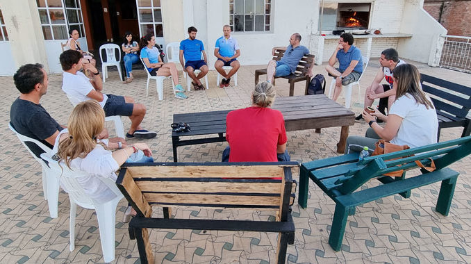 Tardecita del miércoles en un lugar increíble como lo es la terraza del Club Remeros. Los dirigentes anfitriones, liderados por el presidente Andrés Klein, se reunieron con los remeros Tatiana Seijas, Santiago Salgado y Mauricio López, quienes retornaron tras haber realizado una gran tarea en el Sudamericano disputado en Paraguay, y también fue invitado el tenista Francisco Llanes.