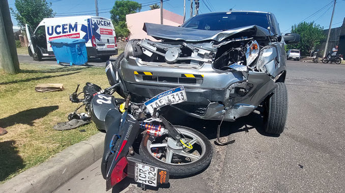 Una mujer sufrió heridas leves al chocar su motocicleta –de 110 cc, matrícula ICE 481– contra una camioneta –Volkswagen, matrícula IAF 2905– en Zorrilla de San Martín y Ayacucho. Tras ser asistida en el lugar por médicos de una ambulancia de SIET, se decidió su traslado a emergencia.