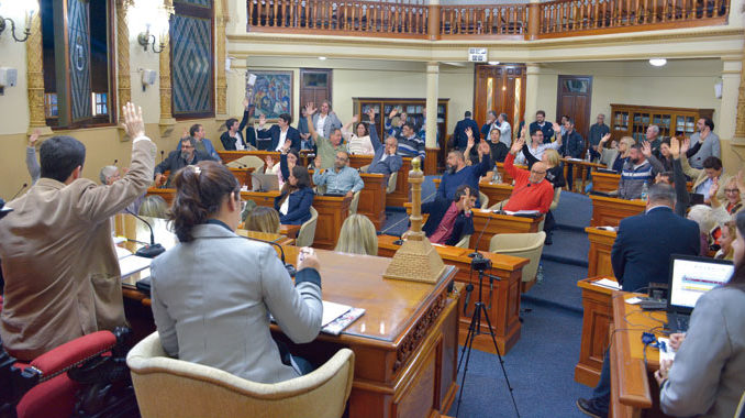 La Junta Departamental de Paysandú deliberó anoche a partir de las 20 para considerar un orden del día de 35 puntos y dar el visto bueno a las comunicaciones y asuntos entrados, en tanto fue aprobada por mayoría una declaración propuesta por el nacionalismo ante los hechos de violencia doméstica que involucraron al exintendente, alcalde y asesor de CARU Mario Bandera, tras planteo como asunto grave y urgente por la bancada del Frente Amplio.
