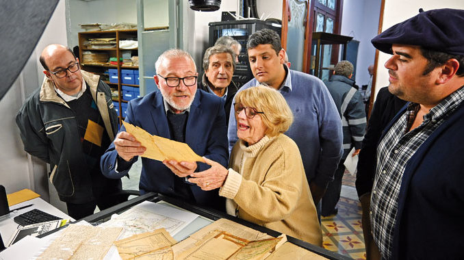 Fue habilitado el Centro de Documentación e Investigación “Daniel Vidart”, cerrado primero por la pandemia y luego por obras de ampliación. La ceremonia incluyó la entrega de reconocimientos a personas que han donado documentación al Centro y la habilitación de la sala “Rodolfo González Rissotto”, donde se conserva material bibliográfico donado por la familia del prestigioso historiador y político fallecido en 2020. En la foto, el encargado del Centro, Andrés Oberti, observa parte del material donado junto a la viuda de González Rissotto, Susana Rodríguez Varese. A la izquierda, el presidente de la Comisión de Patrimonio, Jorge Pedoja, y a la derecha el intendente Nicolás Olivera.