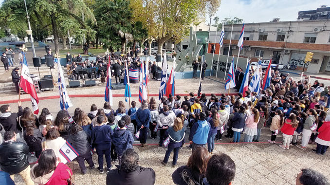 Se conmemoró ayer el trigésimo aniversario del primer izamiento de la Bandera de Paysandú, aun cuando la fecha exacta fue el lunes 8 de junio de 1992. Ese día, a las 10.20, los entonces escolares Verónica Salgado (Quinto Año, escuela 95) y Alejandro Kirchmeir (Sexto Año, escuela 34 de Buricayupí) izaron la bandera que hoy identifica al departamento. Ayer la ceremonia se realizó en el mismo lugar, el Monumento a los Defensores, en plaza Constitución, frente a la basílica. En aquel 1992, la ceremonia se cumplió sin lujos, ante los 2.000 evacuados debido a la creciente que golpeaba la zona portuaria, con el río a 8,48 metros sobre el cero.