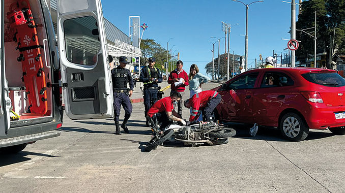 Al parecer, al llegar a la intersección con Ituzaingó el automóvil dobló hacia el Este, ocasión que se atravesó delante de la motociclista que no logró evitar colisionar. Como consecuencia, el birrodado impactó contra el lateral izquierdo del auto. Se hizo presente emergencia móvil de SIET, para luego trasladar al motociclista a Comepa al presentar diversos traumatismos. Asimismo, trabajaron en la escena inspectores de Tránsito y personal de la Brigada de Tránsito de Jefatura.