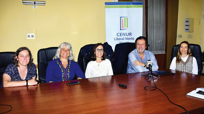 Una delegación de autoridades universitarias, encabezada por el decano de la Facultad de Medicina, Dr. Miguel Martínez, la decana de la Facultad de Odontología, Dra. Mariana Seoane, la directora de la Escuela de Nutrición, Lic. Myriam De León, la directora de la Escuela Universitaria de Tecnología Médica, Lic. Patricia Manzoni, y la coordinadora de la carrera de Medicina en el Litoral, Dra. Diana Domenech, llevó adelante este viernes en la sede Paysandú del Centro Universitario Regional (Cenur) Litoral Norte una serie de actividades académicas vinculadas al desarrollo del área salud en la sede universitaria de Paysandú y la región Litoral Norte. En ese sentido, en conferencia de prensa, se hizo referencia a una serie de proyectos entre los cuales se analiza la viabilidad de incluir nuevas carreras, en el marco de una fuerte política de descentralización, así como también se destacó el impacto de la carrera completa de Medicina en esta región, que permitirá un crecimiento exponencial de nuevos médicos en el mediano plazo en el norte del Río Negro, revirtiendo la realidad actual que marca que en esta parte del país hoy ejercen menos del 10%.
