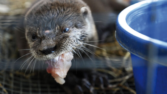 El ejemplar hembra de lobito de río se notaba con mucha fuerza y EL TELEGRAFO pudo observar cómo devoraba su comida y lo mucho que había evolucionado su estado desde la primera vez que se la vio.