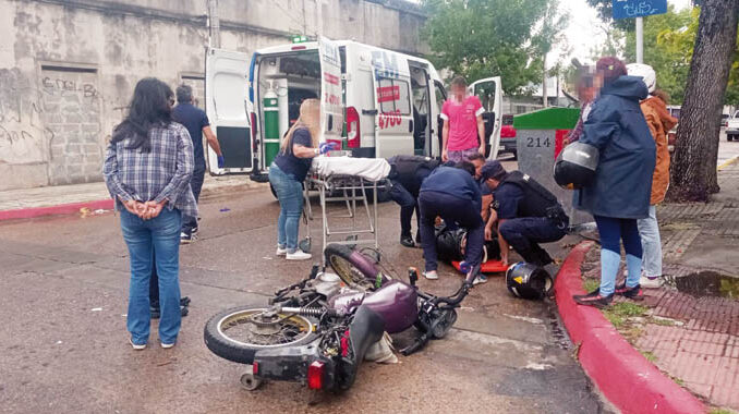 Un hombre resultó lesionado al sufrir un siniestro de tránsito próximo a las 11.30 del martes. Datos recabados por EL TELEGRAFO permitieron saber que se dirigía por Washington –calle preferencial– al Este a bordo de una motocicleta Honda, carente de chapa matrícula.