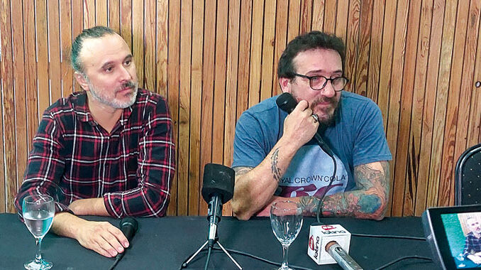 Sebastián Teysera y Sebastián Cebreiro, fundadores de la exitosa banda de rock uruguaya La Vela Puerca, al culminar el ovacionado espectáculo ofrecido en el Anfiteatro del Río Uruguay, dialogaron con los numerosos representantes de medios de prensa presentes, tanto locales como de distintas partes del país y de la vecina orilla, acerca de su carrera que los llevará nuevamente a Europa, al cumplirse 20 años de su primera gira por el viejo continente.