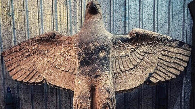 El águila ostenta en su parte inferior la cruz gamada, el principal símbolo del nazismo, ideología que aún hoy tiene seguidores alrededor del mundo y de allí la reticencia del estado uruguayo a que se vendiese, como era el plan original de quienes la extrajeron desde el lecho del río, por el temor a que se usase como un objeto de veneración. En cambio fue resguardada en la fortaleza del Cerro, bajo custodia militar.