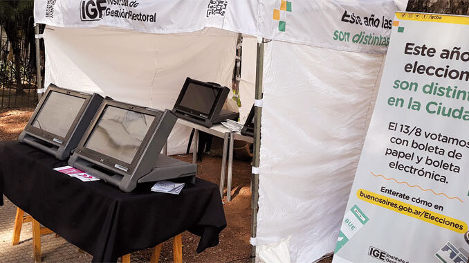 De regreso en Buenos Aires desde el estable y predecible Chile, este corresponsal se encontró con otra novedad de la siempre sorprendente realidad argentina; en las plazas de la ciudad, el gobierno municipal había instalado unas carpas blancas, donde se explicaba a los ciudadanos cómo votar en las elecciones primarias de este domingo. Cual promotoras de los supermercados, unas jóvenes bonitas y amables entregaban bolsas con folletos explicativos y asistían a los interesados en aprender a operar unas computadoras dispuestas para el ensayo del voto electrónico.