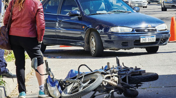 Un hombre y una mujer en moto chocaron con un auto y resultaron lesionados, en la intersección de calle Cerrito y la preferencial Washington.