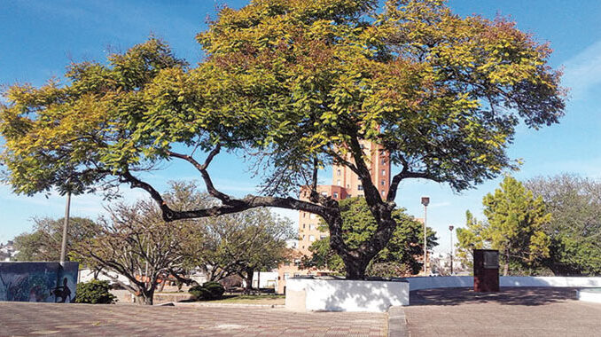 Del histórico Ibirapitá “hijo del árbol de Artigas” que desde 1953 permanece en plaza Bella Vista, se dice que los claveles lo están secando.