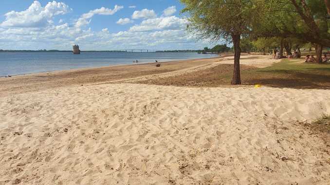 En la jornada de hoy se comenzará a trabajar en el retiro de la capa de barro que quedó sobre la arena del Balneario Municipal, tras la creciente, para posteriormente comenzar con la distribución de nueva arena, en total entre 600 (211 toneladas) y 700 metros cúbicos (247 toneladas) que serán provistos por la refuladora Renemar.