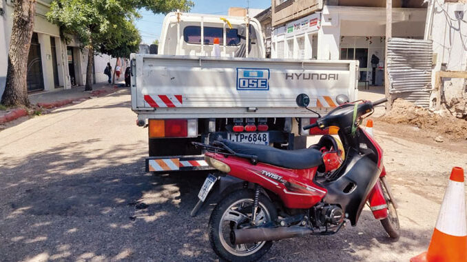 Una mujer sufrió lesiones al verse involucrada en un accidente de tránsito registrado pasadas las 11 de la víspera. En base a los datos primarios recabados por EL TELEGRAFO, se dirigía a bordo de la motocicleta Winner Twist 125 cc, con matrícula ICT 5185, por Dr. Luis Alberto de Herrera al sur. A unos metros tras haber cruzado Leandro Gómez, fue sorprendida por un camión de OSE que –según su conductor– encendió las balizas para indicar que se detendría, ocasión en que la motociclista lo embistió de atrás. En tanto, el camión Hyundai, empadronado como LTP 6848, era conducido por un funcionario del Ente estatal.