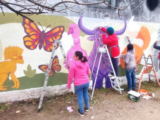 Una de las paredes de nuestra ciudad se vio intervenida el pasado sábado por los integrantes del “Taller de Muralismo Dos” que brinda el artista Jonathan Oroná en “El Sitio”. EL TELEGRAFO habló con el artista, quien señaló que comenzó el año anterior a brindar el taller de muralismo y que fue muy bien recibido por el público, “al punto que este año, como se anotaron muchas más personas, debimos armar dos grupos. Lo que plasmamos hoy es el resultado de un intenso trabajo con el primero de los grupos”.