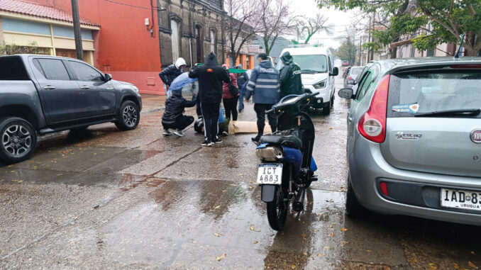 Según la información recogida por EL TELEGRAFO, la mujer se dirigía por 19 de Abril en dirección al norte a bordo de la motocicleta Winner, empadronada como ICT 4883. Al llegar casi a mitad de cuadra, entre Charrúas y Washington, aparentemente fue sorprendida por otro vehículo que pretendía retomar la marcha, por lo que ésta frenó. Debido al pavimento mojado, perdió el dominio del birrodado y cayó. Fue asistida en primera instancia por particulares que dieron aviso al 911. En tanto, al arribo de una ambulancia de UCEM se le diagnosticó traumatismo en cadera, por lo que fue trasladada hacia el servicio de urgencias del Hospital Escuela del Litoral.