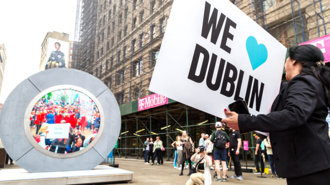 Y el siguiente caso viene directamente del Primer Mundo, de Nueva York y Dublín. Hace poco habilitaron en ambas ciudades un “portal” que las comunicaba en tiempo real. No, no habían resuelto el tema de la teletransportación, sino que simplemente era una pantalla en forma con forma de dona que conectaba en vivo y en directo ambas ciudades.