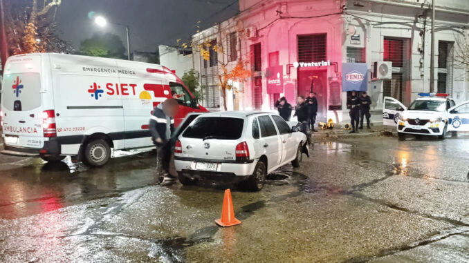 Volkswagen Gol, con matrícula IAC 2376, por Ituzaingó hacia el Este. Al llegar al cruce con Monte Caseros y notar que estaba habilitado por el semáforo continuó la marcha, ocasión en que chocó el patrullero Renault Logan, empadronado como MIS 05837, perteneciente al Área de Respuesta Policial que iba con barrales y sirena encendidas ya que trasladaba desde Nuevo Paysandú a una joven embarazada de 8 meses que requería con urgencia llegar al Hospital.
