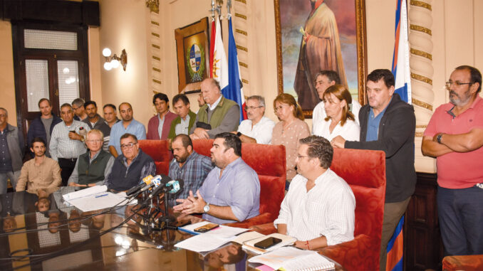La intendencia de Paysandú, con su titular Nicolás Olivera a la cabeza, convocó a una reunión con representantes de empresas y realidades productivas del departamento, todos vinculados a un tema excluyente: la caminería rural. “Estamos en una situación de agobio, de crisis, porque el principal enemigo que podemos tener en la caminería, que es la lluvia, nos ha golpeado duro en los últimos meses: cayeron 1.740 milímetros entre octubre y abril. No hay forma de resolver eso cuando el clima se pone así; esta realidad no es exclusiva de Paysandú, sino que es de todo el país” comenzó diciendo el intendente Olivera ante la prensa, en una sala Acquistapace colmada por directores, todos los alcaldes (a excepción del de Porvenir) y representantes de las empresas afectadas por la situación.