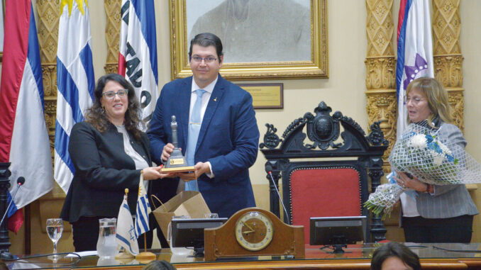 En una sesión especial la Junta Departamental, presidida por Alejandro Colacce, recibió a la embajadora de Israel en Uruguay, Michal Hershkovitz, ante la presencia de ediles, el secretario general de la Intendencia, Fermín Farinha, entre otras autoridades y referentes de la colectividad.