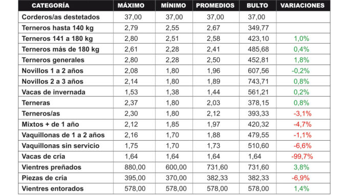 Diego De María, destacó a EL TELEGRAFO, que las categorías que mostraron subas fueron “los terneros con un 1,8% respecto a la primera subasta de junio, en tanto los vientres preñados subieron 3,8%. El resto de las categorías lograron valores similares al anterior remate”.