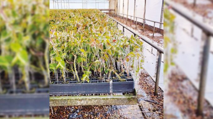 El sistema funciona prendiendo todos los riegos de los acopios exteriores, “y con ese sistema encendido durante todo el período que dura la helada con estas temperaturas, protege las plantas mediante el ingreso de agua, evitando que se congele el agua que tiene la planta en su interior, y evita tener algún daño en la supervivencia y en la formación de la planta”. El sistema aplica el riego sobre la hoja, “manteniéndola constantemente mojada, y esa transferencia de calor entre el pasaje de agua de estado líquido a estado sólido, mantiene la planta estable, evitando que el agua que se encuentra dentro de las células de la planta se congele y determine que la planta muera”.