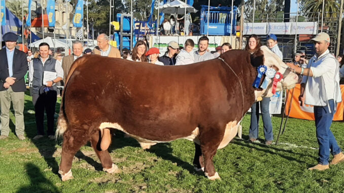 Cabaña La Hormiga, de Zaina SRL, expuso en la muestra Polled Hereford de la Expo Prado el Gran Campeón de la muestra, reproductor muy elogiado por el jurado Enrique Bonino.