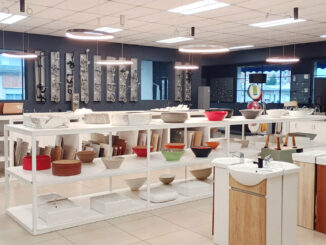En junio de este año se inauguró la renovación del Salón de Baños & Cocinas, ubicado en la planta alta de la casa central, en Avenida España casi Felippone. “Adaptamos el salón a los nuevos formatos de revestimiento. Antes las piezas más grandes medían 60×60 cm. Pero hoy aparecieron en el mercado piezas de 1,20×1,20, incluso más grandes. Son placas enormes, y mostrarlas es todo un desafío”, explicó Néstor.