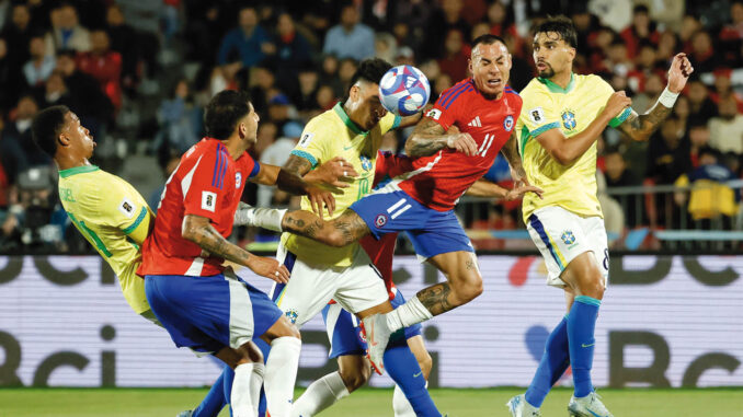 La jornada de eliminatorias del jueves se cerró con el duelo entre Chile y Brasil en el Estadio Nacional de Santiago, un partido cambiante que Brasil ganó 2 a 1 de atrás para llevarse tres puntos muy necesarios de tierras chilenas. Apenas un minuto había pasado cuando la roja abrió el marcador; Loyola envió un centro desde la derecha y Vargas cabeceó en el segundo palo por arriba de Ederson, que estaba mal parado y a pesar de que se estiró, no pudo contener. Osorio estuvo cerca de aumentar minutos después, en lo que era el mejor momento del partido para Chile. La visita se fue acomodando en cancha y pasó a dominar, pero sin lastimar al local, hasta que a los 45’ Savinho enganchó adentro del área y centró para que Igor Jesús anticipe a su marcador, convirtiendo el gol del empate de cabeza. Brasil siguió dominando tras el descanso, y fue el dueño casi absoluto de las acciones en la segunda mitad; cuando parecía que la insistencia no tendría premio, llegó el segundo de la verdeamarela: Luiz Henrique recibió la pelota por derecha, enganchó hacia el área y remató cruzado para vencer la resistencia de Cortés. Triunfo importante para que Brasil se meta entre los cuatro de arriba.