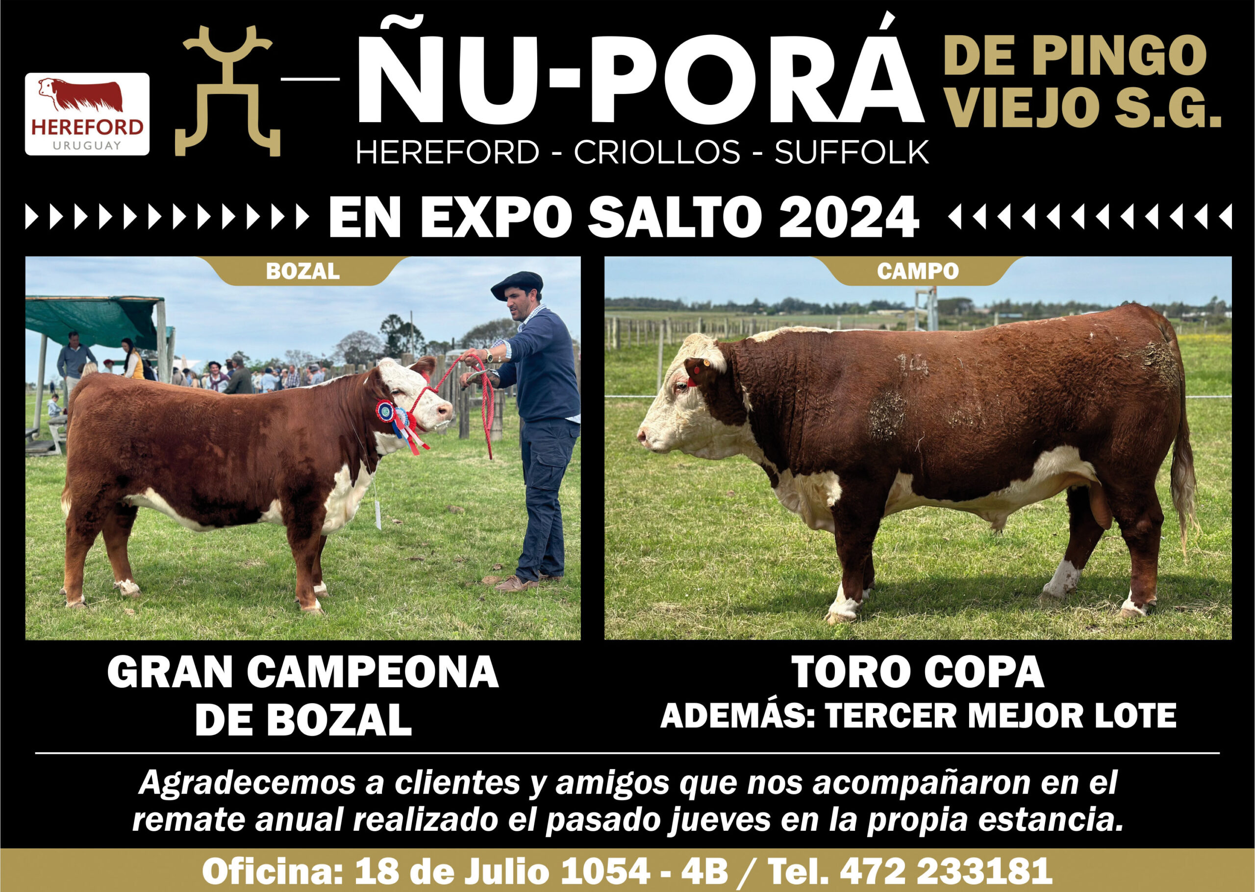 Por su parte la firma Ricardo Stewart con Romualdo & Cía., nos informó los siguientes negocios: Lote de lana cruza Merino, en el departamento de Cerro Largo, cotizó a U$S 2,50 el vellón y 0,80 los subproductos. Se trata de un lote de 10.000 kilos de lana de 23,2 micras, con 80,6% de rendimiento al lavado.